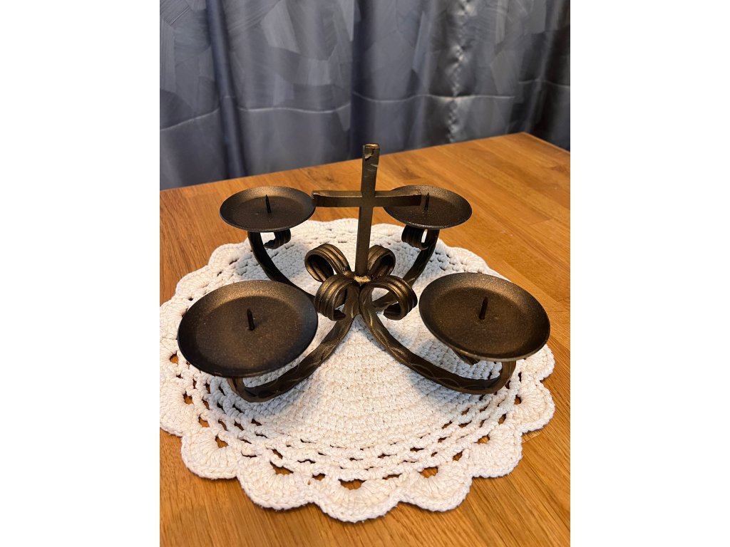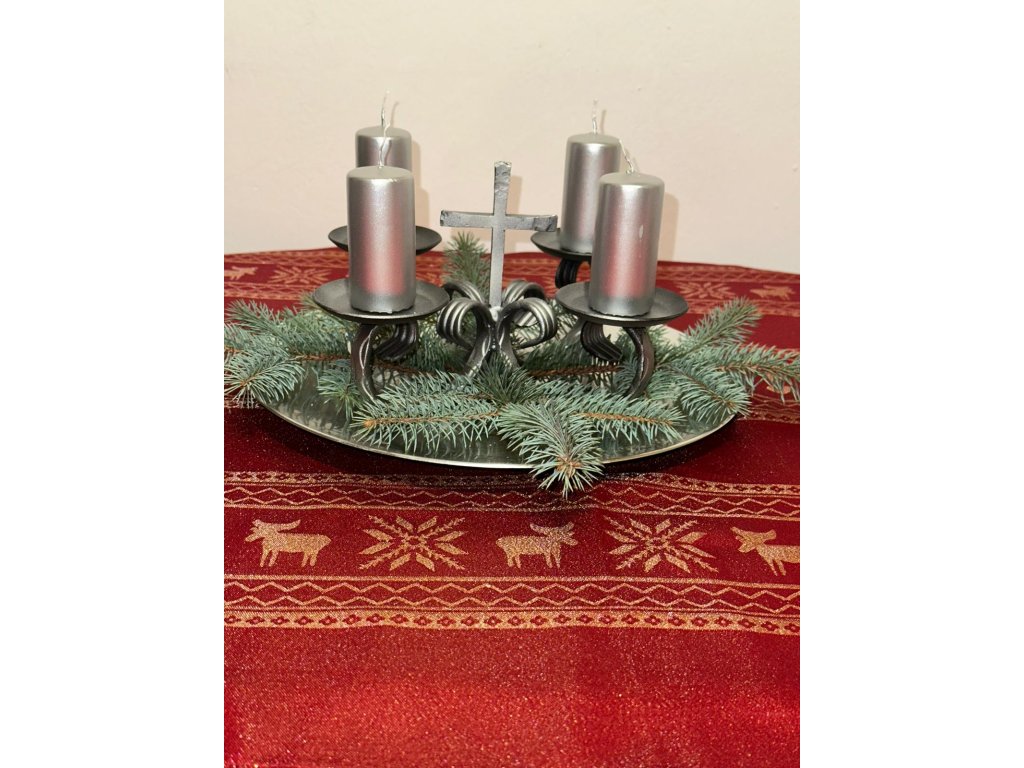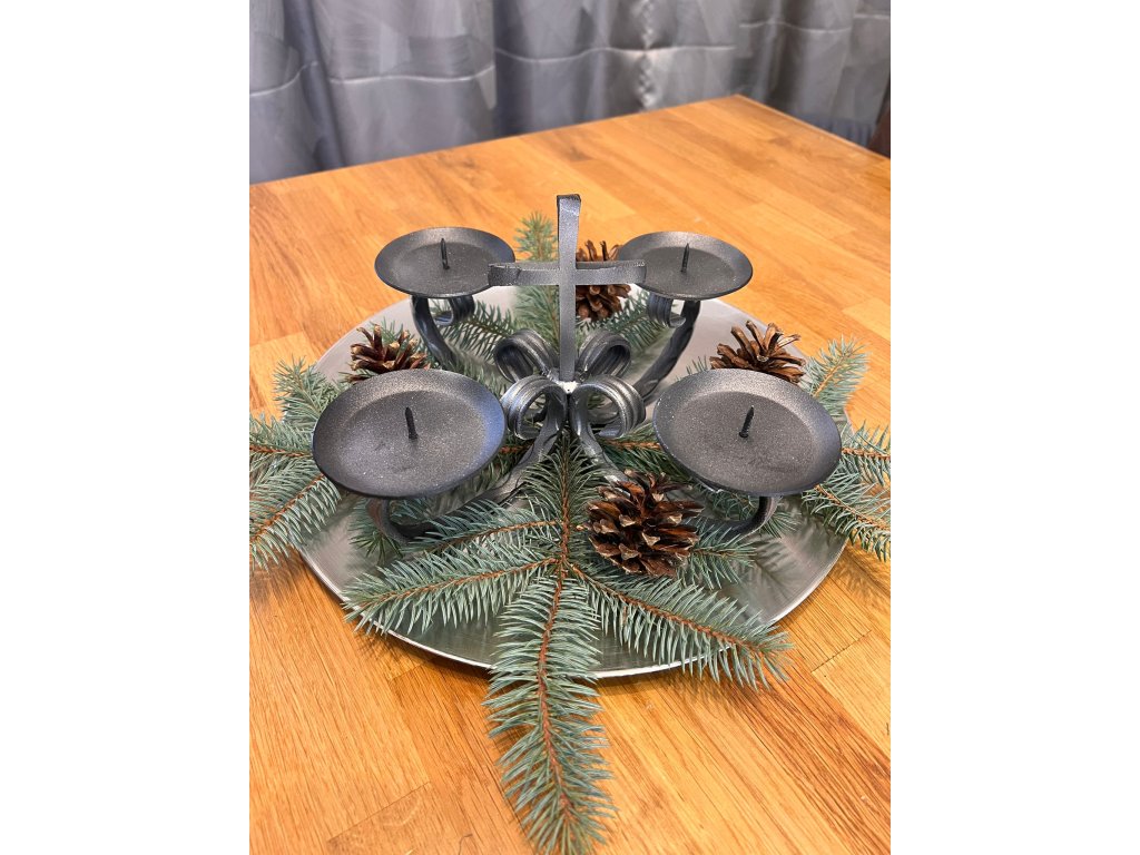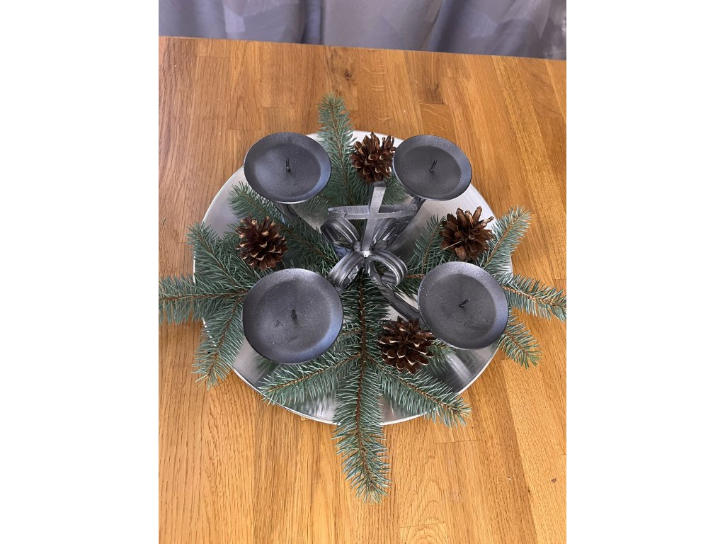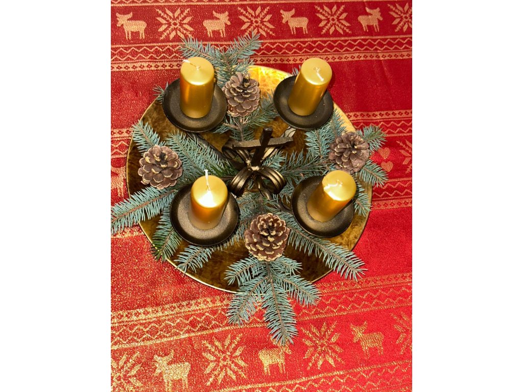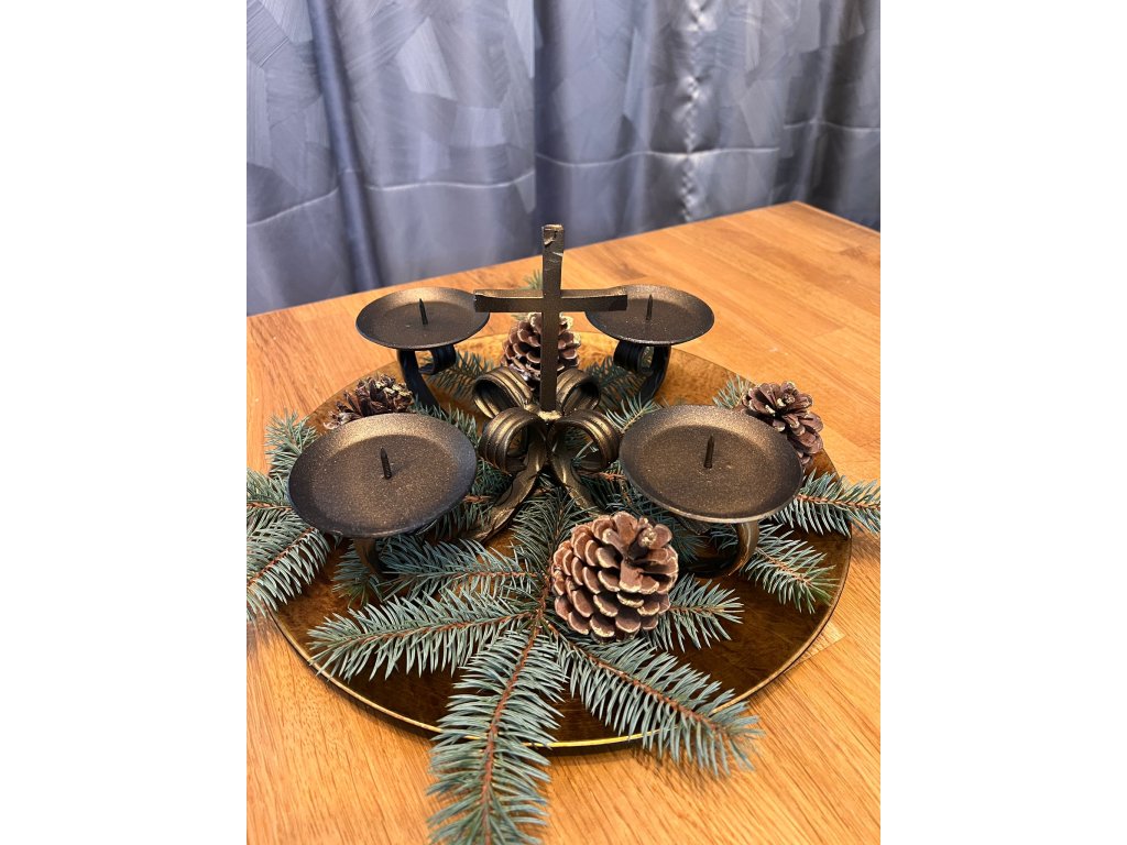 Tento adventný kovový svietnik sa predáva bez dekorácií. Zobrazená výzdoba (sviečky, šišky, čečina) slúži iba ako inšpirácia a nie je súčasťou balenia.