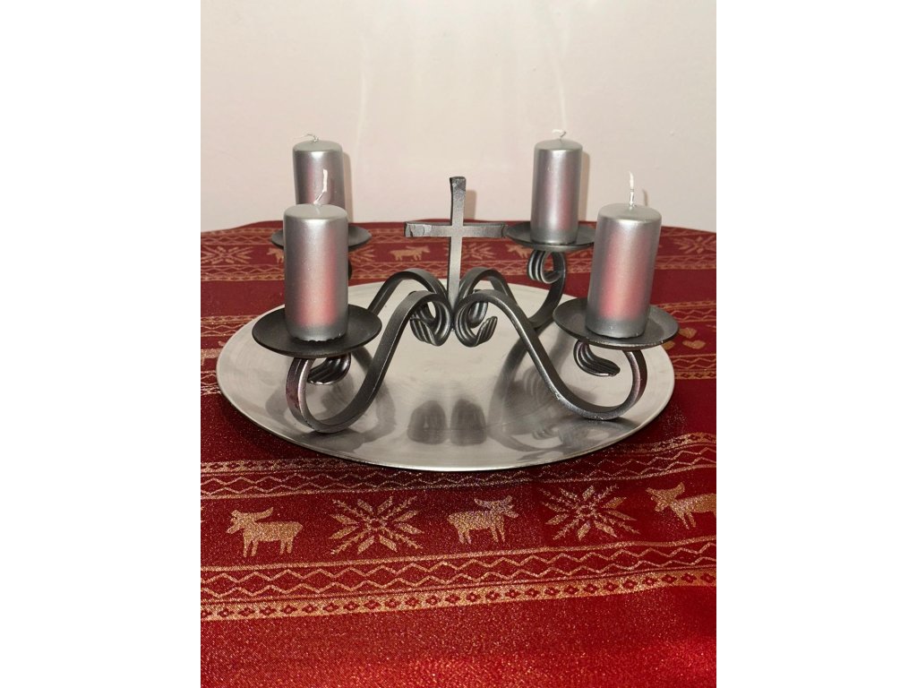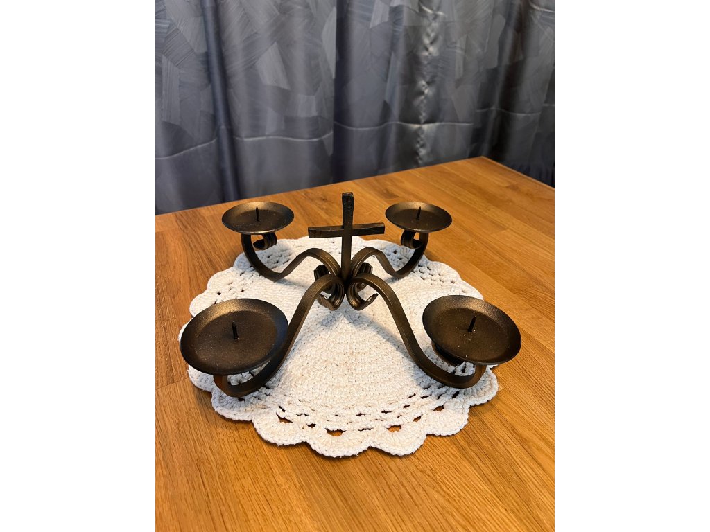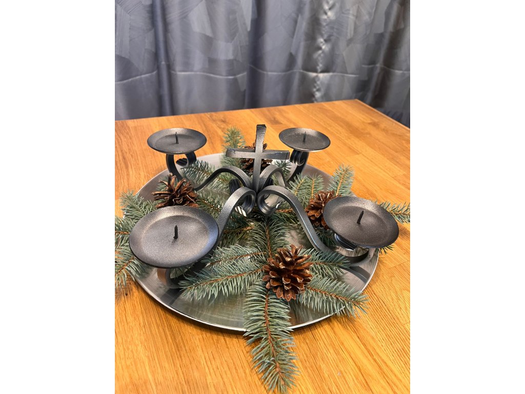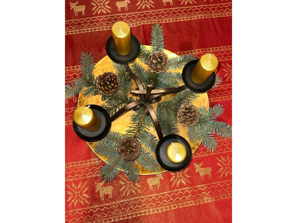Tento adventný kovový svietnik sa predáva bez dekorácií. Zobrazená výzdoba (sviečky, šišky, čečina) slúži iba ako inšpirácia a nie je súčasťou balenia.