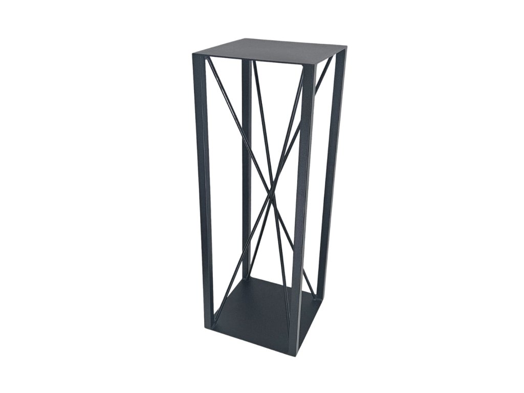 Pamätáte si na hru s padajúcimi paličkami? Presne túto spomienku na hravosť a zdanlivý chaos sme pretavili do podstavca Mikado. Jeho bočné steny sú vyplnené štíhlymi oceľovými tyčami, ktoré sa navzájom križujú v dynamickej kompozícii. Výsledkom je fascinujúci vizuálny efekt, ktorý sa mení s každým uhlom pohľadu a vnáša do prísnej geometrie prvok náhody a energie.